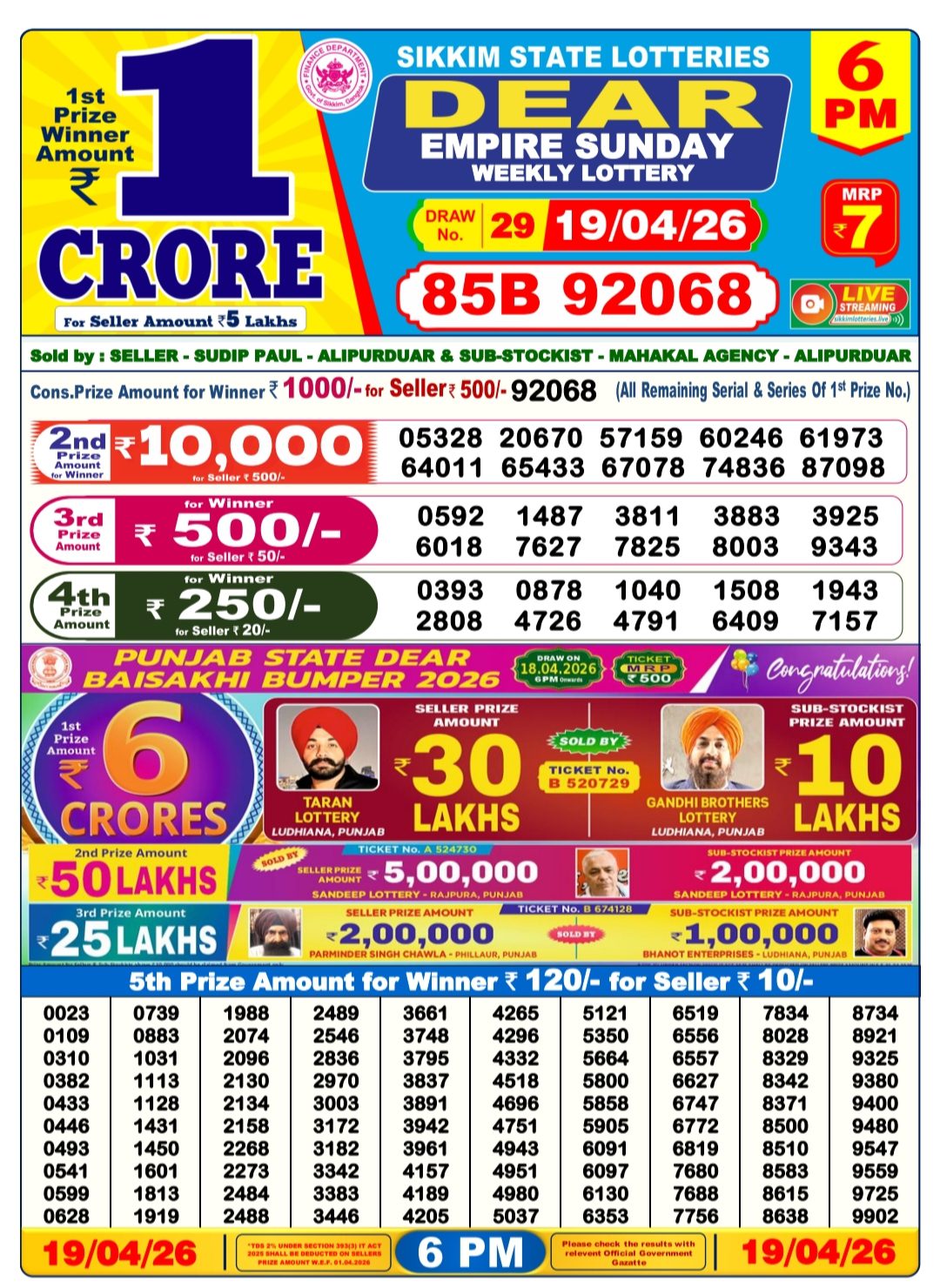 Consolation Prize: ₹1000 for winners, ₹500 for sellers (All remaining serials of the 1st prize number)