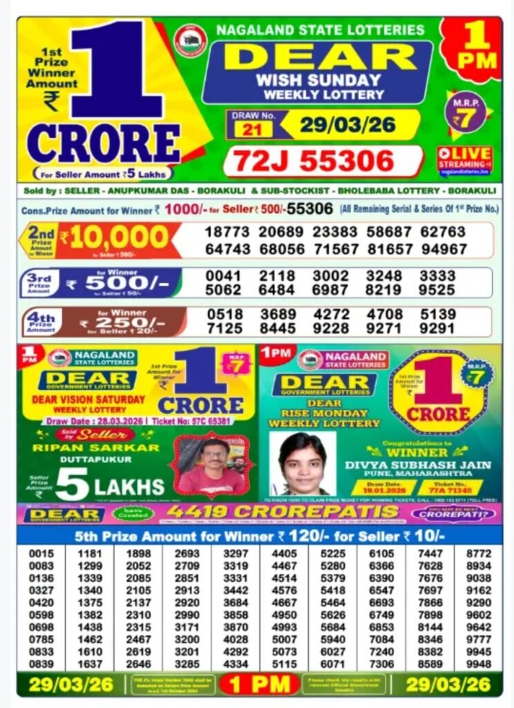 Looking to check the Lottery Sambad result for today’s 1 PM draw? You’re in the right place! We update the Nagaland State Lottery results regularly, including morning, night, and evening draws, right here every day.
