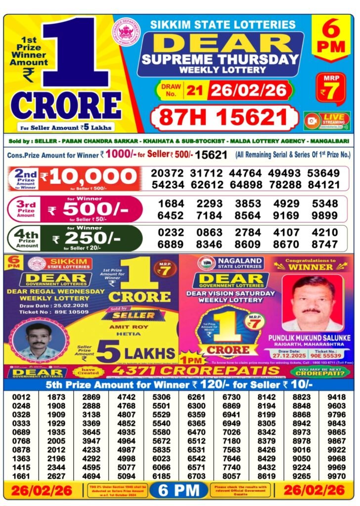 Lottery Sambad Result Yesterday 8 PM 6 PM 1 PM